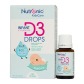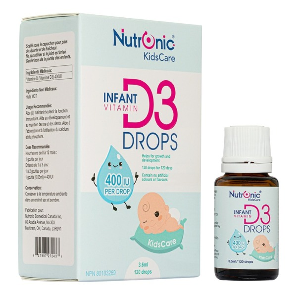 Pour les nourrissons et les tout-petits. Chaque goutte de vitamine D3 pour nourrissons fournissent des nutriments essentiels aux nourrissons et aux tout-petits de 0 à 3 ans. Les gouttes soutiennent les fonctions immunitaires, le développement, ainsi que la formation des os et des dents.